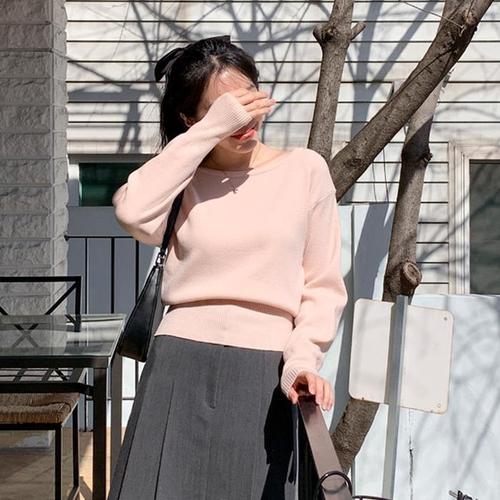 [신상오픈런]블루종니트 라운드넥 슬림핏 세미크롭 드롭 긴팔티셔츠 (30317631)