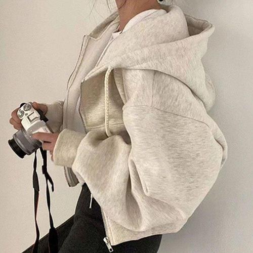 리치언니 여성용 오버사이즈 세미 크롭 후드 집업