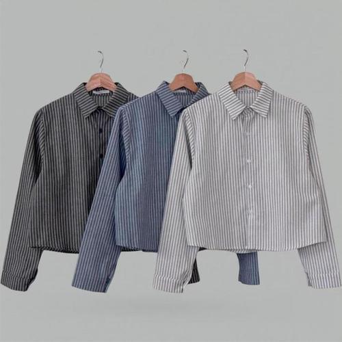 [신상오픈런]스트라이프셔츠 잔줄 여성 크롭 긴팔 린넨 마남방 (31642509)