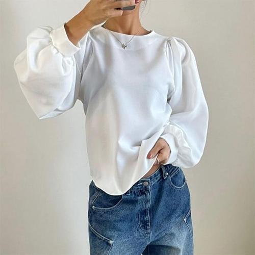 옷자락 / 여성 가을 리본 유넥 퍼프 긴팔 크롭 블라우스