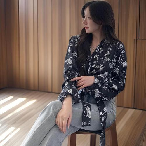 [신상오픈런]타이블라우스 기모노핏 퍼프긴팔 플로럴 크롭셔츠 (31545968)