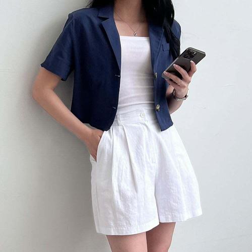 [셀럽하우스]여성자켓 SQRN7621 휴가복 디몬드 반팔 크롭자켓