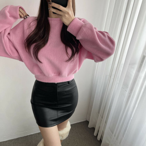 글램핏 / 부드러운 기모 러블리 부들 루즈핏 세미 크롭 맨투맨