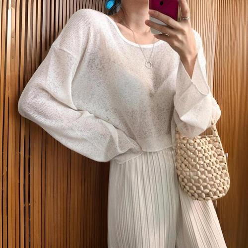 [신상오픈런]여성 여름 시스루 크롭 긴팔 린넨 니트 커버업 (32627044)