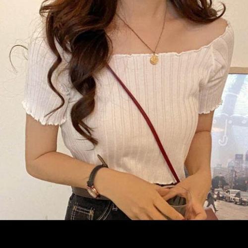 여성 발레 상의 골지 오프숄더 크롭 긴팔티 5색