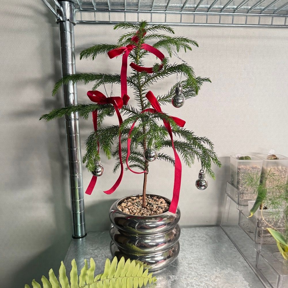 크리스마스 미니트리 중품 생화트리 아라우카리아 (리본+오너먼트 포함)