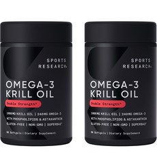 스포츠리서치 슈퍼바2 앤타크틱 크릴 오일 1000mg 아스타크산틴 포함 소프트젤, 2개, 60개입, 60정