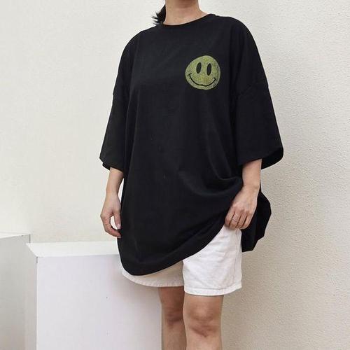 [에이치플러스몰]루즈핏 큰웃음 스마 반팔 롱 티셔츠
