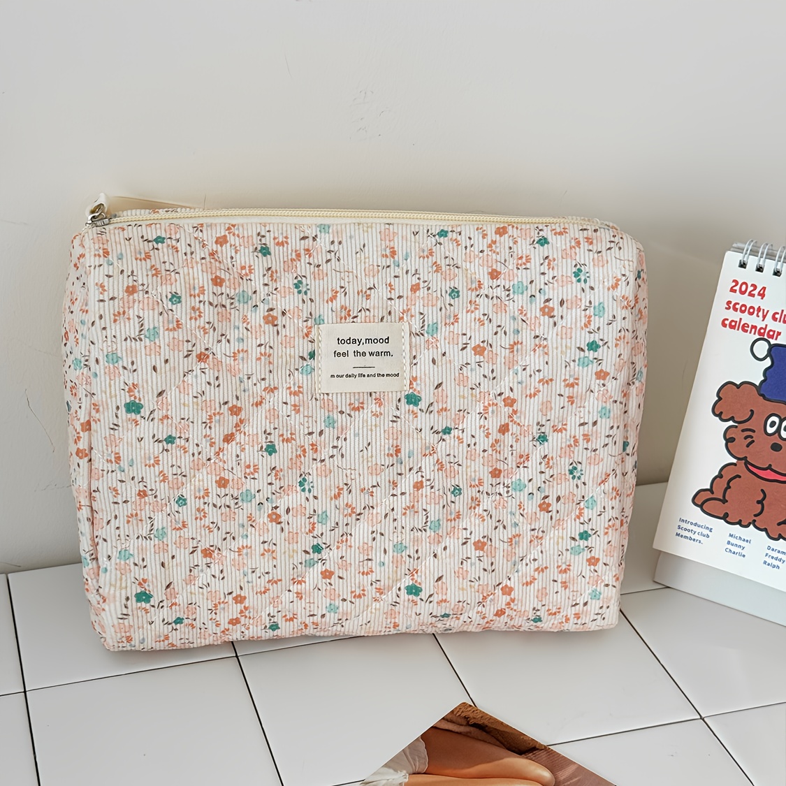 TEMU 소형 꽃무늬 프린트가 있는 부드러운 코듀로이 화장품 클러치, 신선하고 달콤한 지퍼 디자인. 일상용 또는 여행 시 소품 수납에 적합. 세면도구 여행 가방, 데일리 메이크업 액세서리, 휴대용 수납 파우치, 일상적인 가정용으로 사용하는 스타일리시하고 예쁜 여성용 가방