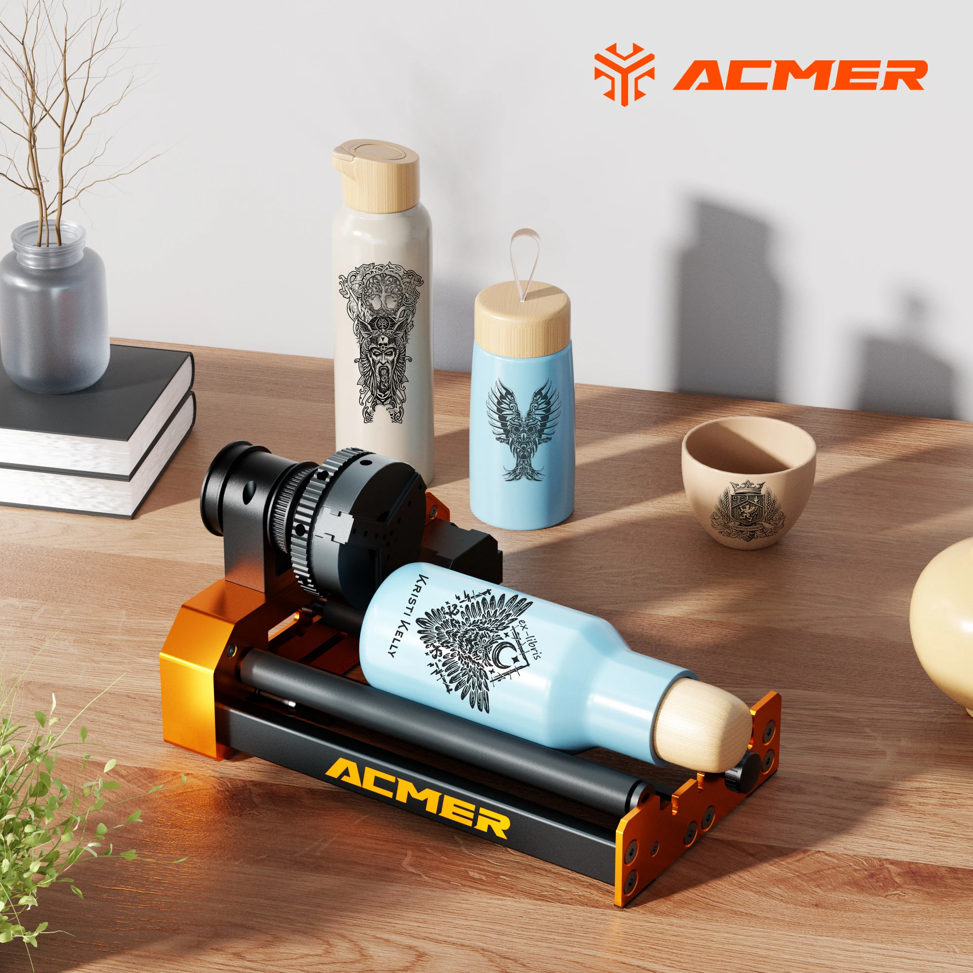 HOT ACMER M4 레이저 조각기 로터리 모듈 Y축 회전 롤러 모듈 (회전축 클램프 직경 4-64mm) 액세서리 곡면용