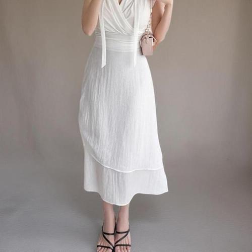 [신상오픈런]여성 쿨링 롱 스커트 레이어드 셔링 트임 밴딩 디자인 (40724290)