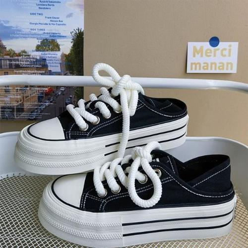 여성 베이직 캔버스 통굽 뮬 스니커즈 키높이 블로퍼