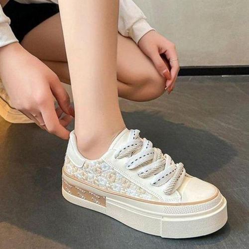 셀러리픽 여성용 하이탑 캐주얼 캔버스 슈즈 봄 가을 신상품 두꺼운 밑창 레이스업 8cm 굽높이 운동화 가벼운 착용감 편안한 스타일링 데일리 패션
