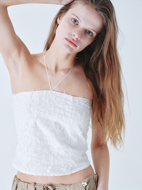 [소프트서울] 키세스 트위드 홀터넥 탑 [화이트]