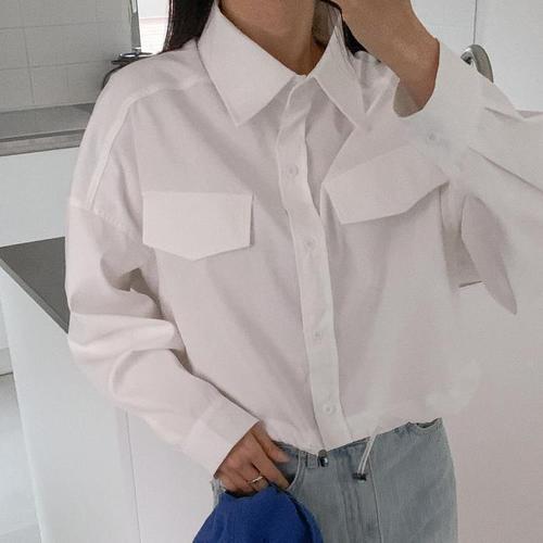 [신상오픈런]허리스토퍼 플랩 개강룩 졸업식 키작녀 크롭셔츠 흰남방 (29063881)