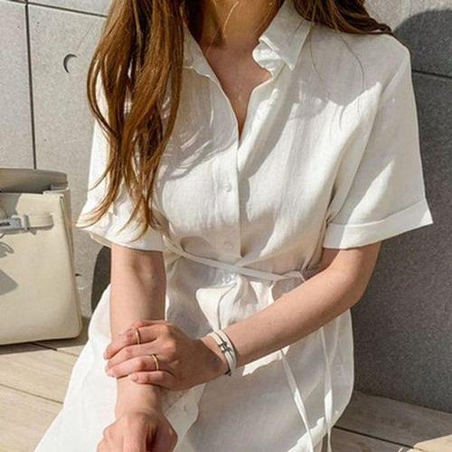 [에이치플러스몰]롱셔츠 원피스 추천 시원한반팔 체형커버 꾸안꾸 차분