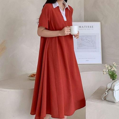 슈팅스타 / 브이넥 세일러 카라넥 셔츠 롱 원피스
