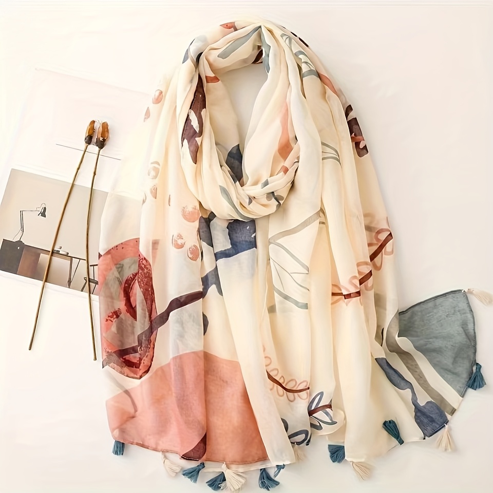 TEMU 새로운 여성용 스타일 우아한 나뭇가지 소프트 예술적인 캐주얼 술 스카프 패셔너블한 랩 숄 다용도 아웃도어 액세서리