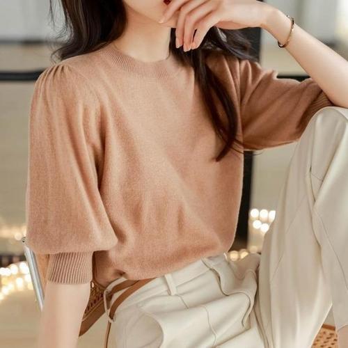 [드레스허그]키에스 라운드 퍼프소매 슬림 니트 3color