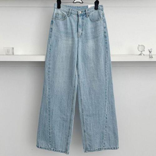 [옷자락]여자 맥시와이드 키큰녀 커브드 사선절개 여름 청바지