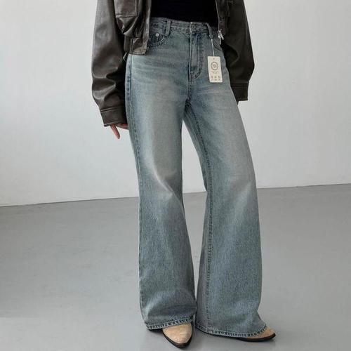 [미라클세븐]여성용 플레어 부츠컷 청바지 키 큰 사이즈 가을 워싱 디자인