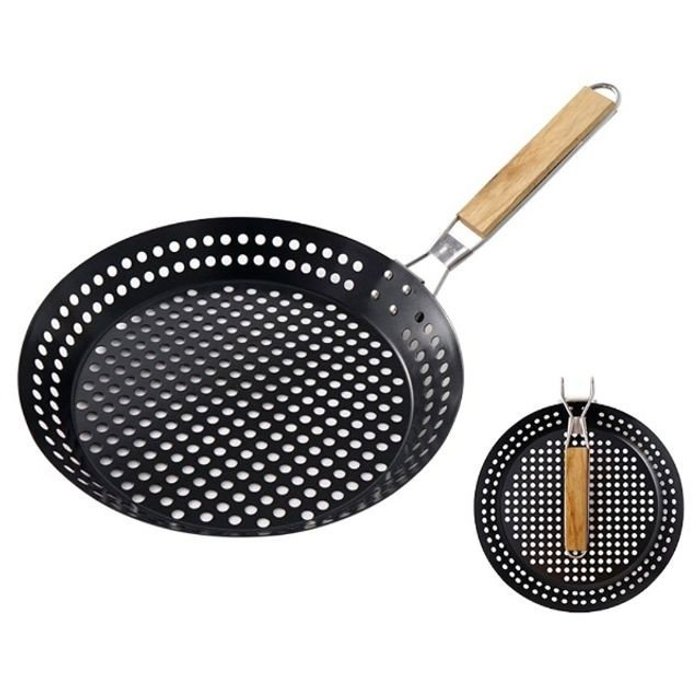 타공 스테인레스 캠핑용 접이식 휴대 바베큐 직화용 우드 손잡이 팬