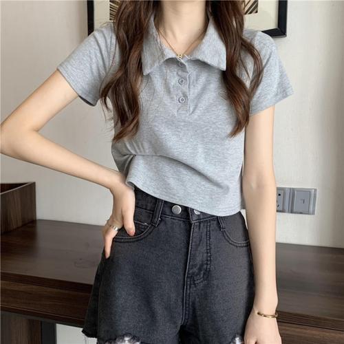 여자 카라 하트로고 세미크롭 반팔 티셔츠 SDW-TSH-SSNY1001735