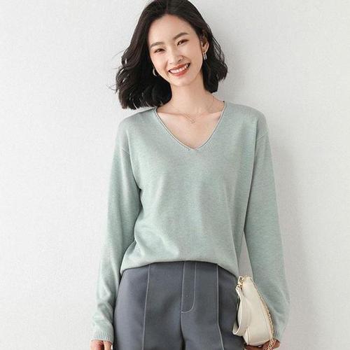 여성 브이넥티셔츠 10컬러 베이직 무지 브이넥 니트 긴팔 티셔츠 WFJSR3T