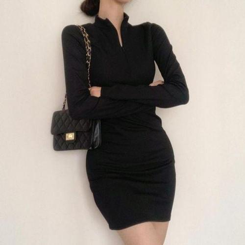 [에이치플러스몰]지퍼넥 머스트해브이지웨어 타이트핏 롱드레스