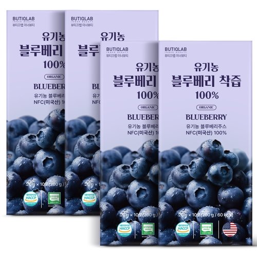 뷰티끄랩 NFC 유기농 블루베리 착즙 100% 주스 스틱 원액 4박스