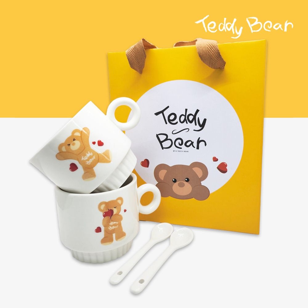 귀여운 곰돌이 머그컵 2p + 티스푼 2p 선물 세트 (280ml)