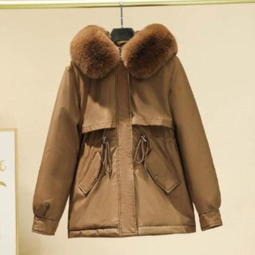 여성 하프 밍크 라이크 코트 보온 탈부착 퍼 카라 퍼 코트 빅 사이즈 도톰 퍼 안감 너구리 모조 퍼 코트