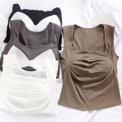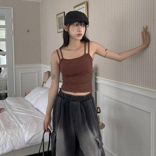 여성 끈 나시 슬림 여성 내장형 패드 더블 스트랩 슬림핏 탱크탑 봄 여름 가을 LCL