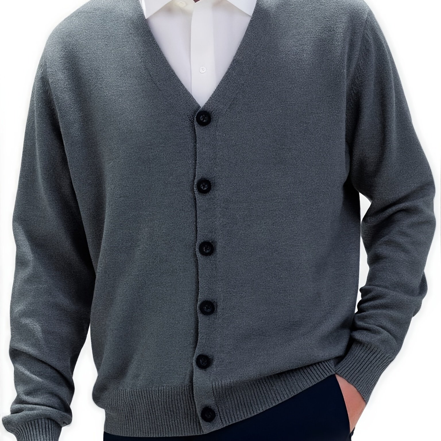 TEMU 플러스 사이즈 남성용 두꺼운 안감 V넥 가디건 - 겨울용 따뜻한 니트 스웨터, 버튼 프론트 긴팔 캐주얼 코트, 레귤러 핏 단색, 클래식 V넥 디자인, 내구성 있는 버튼 클로저, 플러스 사이즈