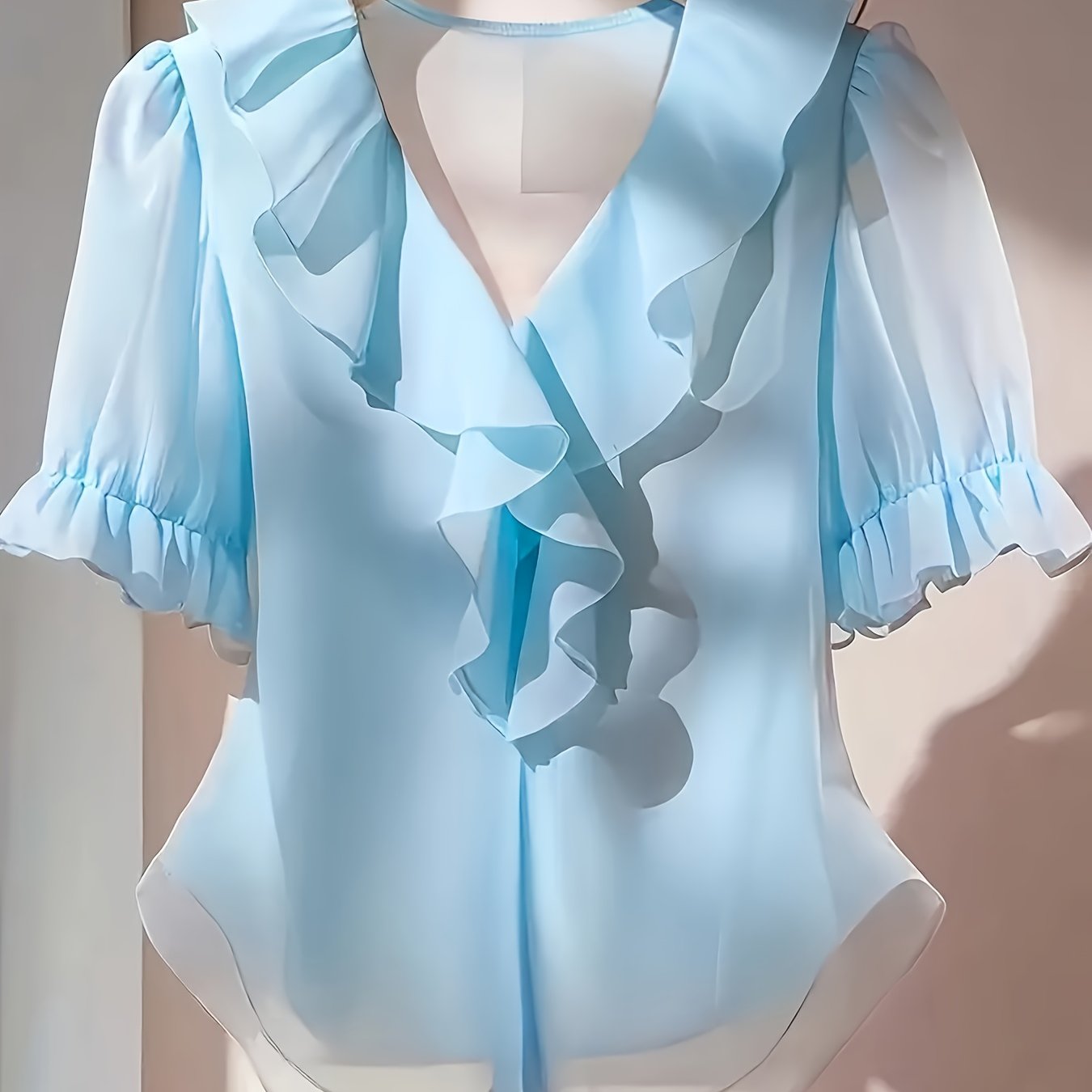 TEMU Franklia V넥 플리츠 장식 퍼프 슬리브 캐주얼 탑, 스타일리시하고 트렌디함