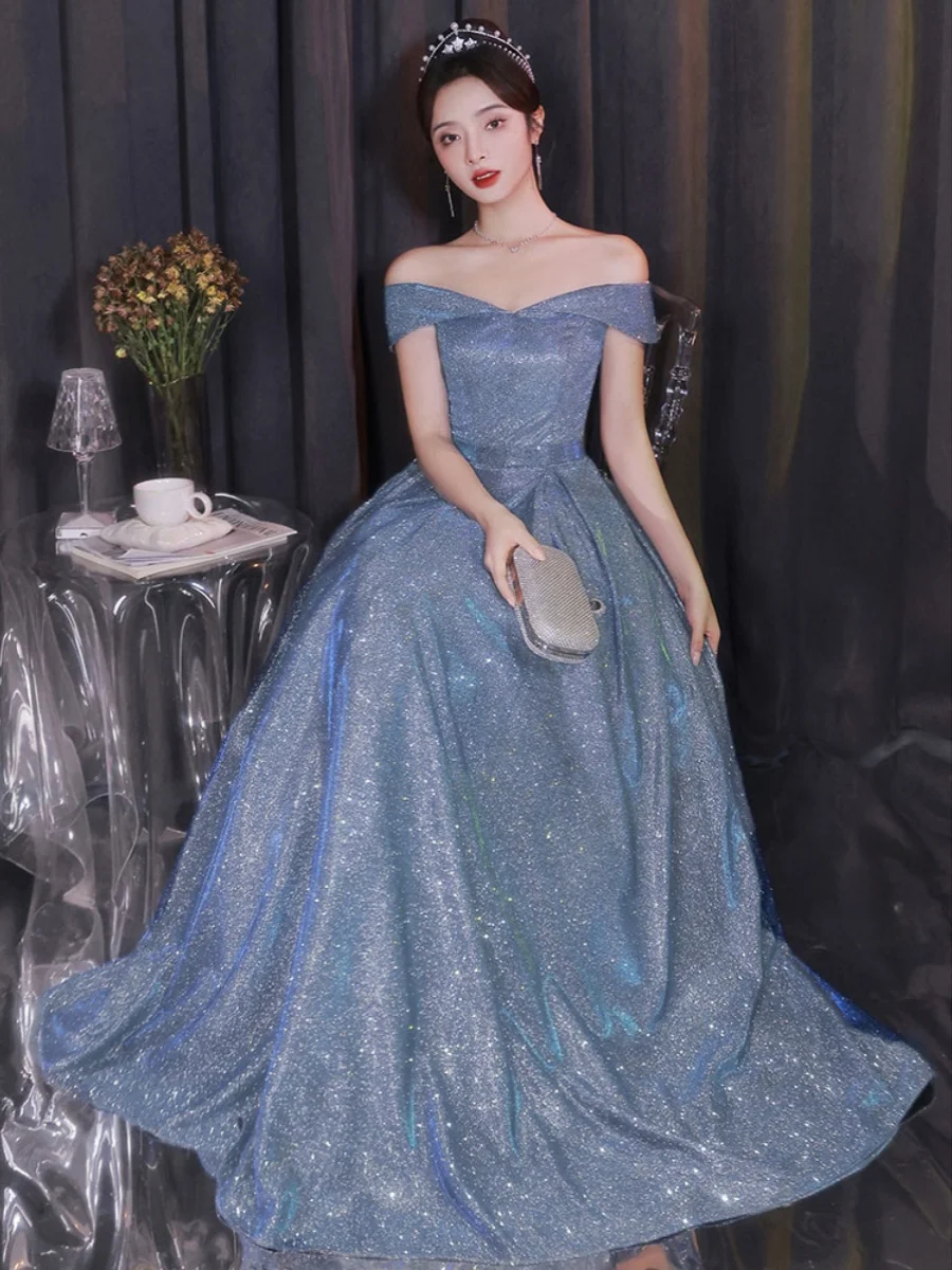 우아한 롱 원숄더 합창 지휘자 이브닝 가운 스타리 스카이 신상 2025 여성 드레스 웨딩 파티 공연용