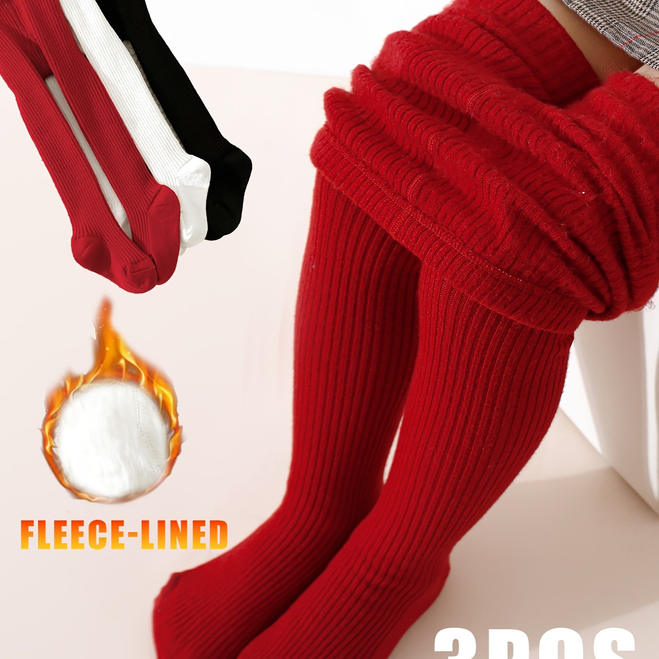 TEMU 3팩 여아용 두꺼운 기모 안감 레깅스 - 겨울 따뜻함, 신축성 있는 스키니 핏, 단색 (레드) - 올 시즌 캐주얼 & 포멀 의상 - 데일리 레깅스, 겨울 따뜻함, 세련된 디자인, 편안한 착용감