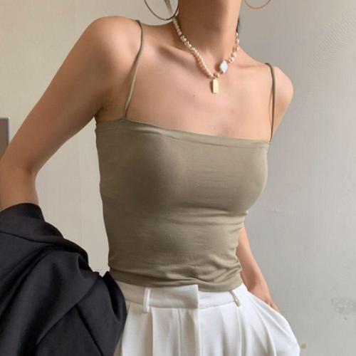 얇은 스트랩이 있는 섹시한 짧은 탑, 심플한 흰색 탱크탑, 한국 스타일 여성 민소매 탑, 탱크 속옷, 피티드 캐미솔