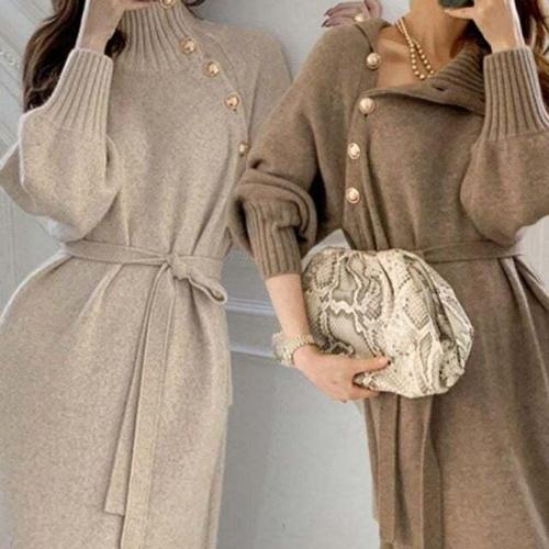 [셀럽하우스]여자 LKRV1080 롱니트 스타일 단가라 폴라 원피스 고품질 겨울