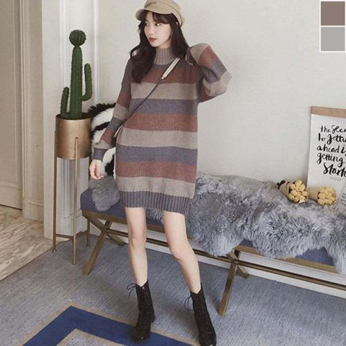 [엄지척]목 배색 폴라 롱니트 원피스 단가라 니트 터틀넥 롱_19910912_667501