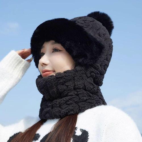 4컬러 겨울 방한템 목도리 일체형 털방울 니트모자 WFKXKJU