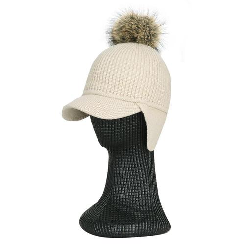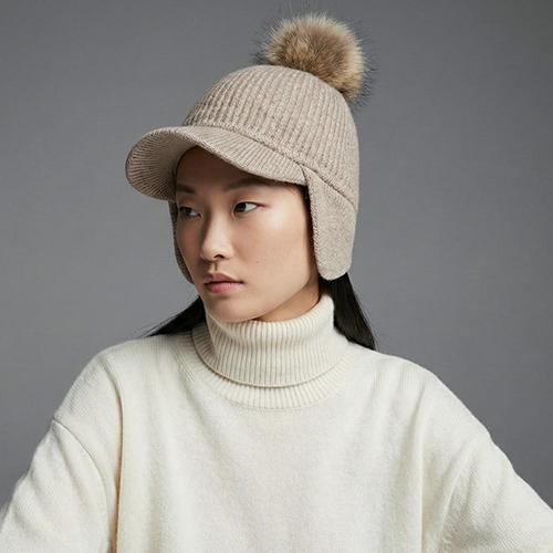 국산 여성 털방울 6컬러 귀달이 니트 챙모자 KM-WH-0899-베이지