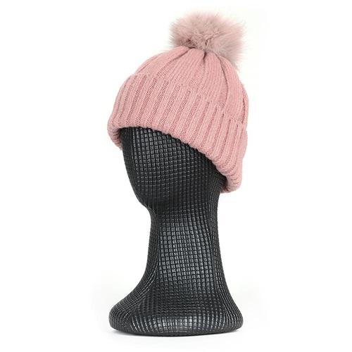 국산 여성 방한 골지 털방울 니트 모자 KM-WH-0897-핑크