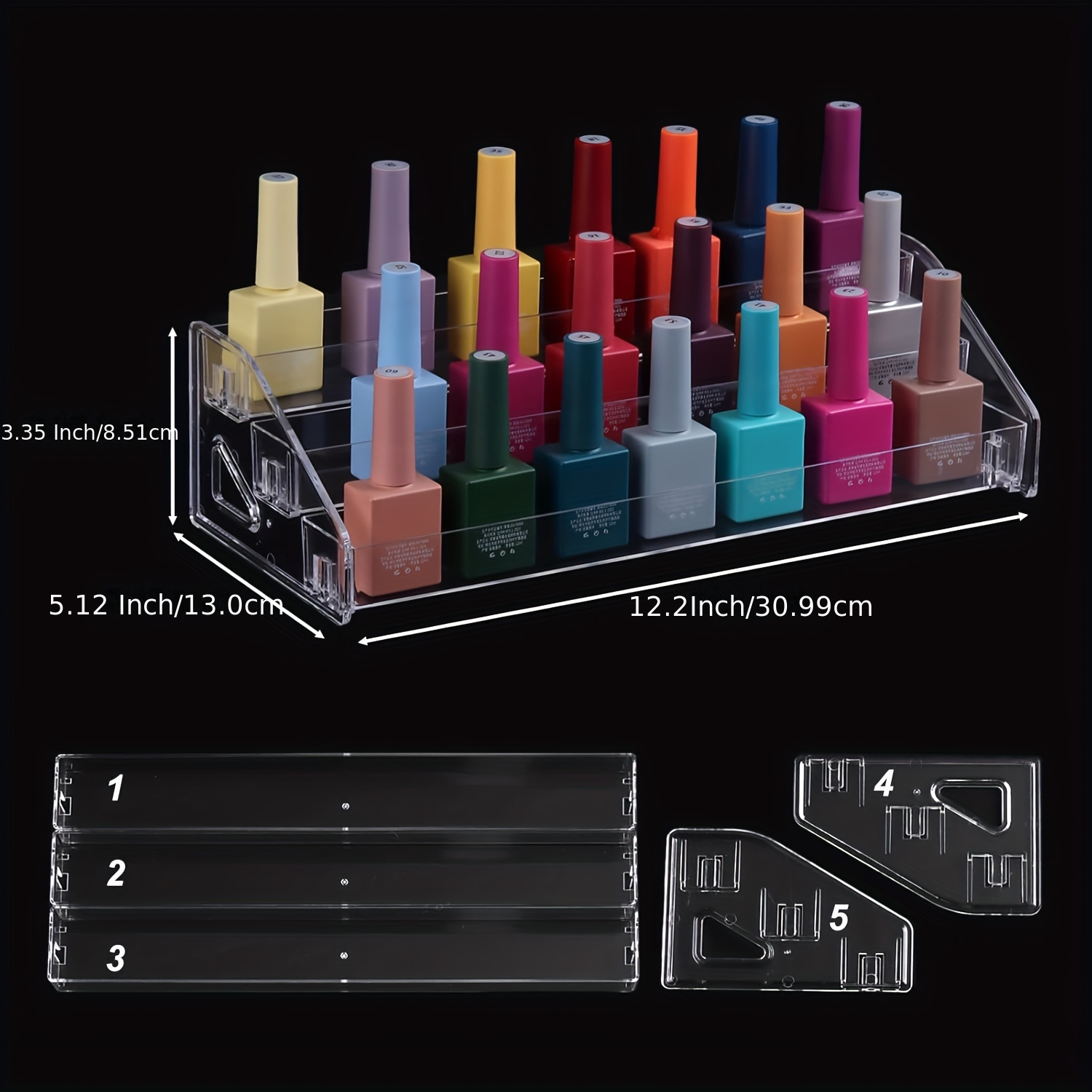 TEMU 다층 네일 폴리쉬 정리함 - 투명한 레이어가 있는 스텝 선반, 공간 절약형 화장대 정리함 (살롱, 욕실, 책상용) - 튼튼하고 가벼운 구조, 간편한 조립, 네일 폴리쉬, 메이크업, 립스틱 호환