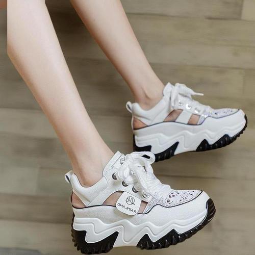 여성용 통굽 캐주얼 가죽 운동화 데일리용