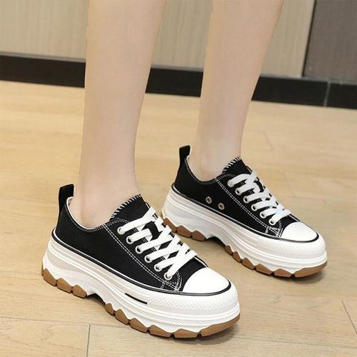[신상오픈런]여성 통굽 캔버스 운동화 스티치 디자인 키작녀 적합 (33712919)