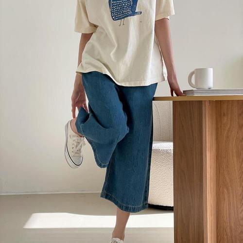 [신상오픈런]8부청바지 논스판 와이드 등원룩 미시 통큰 밴딩팬츠 (31658297)
