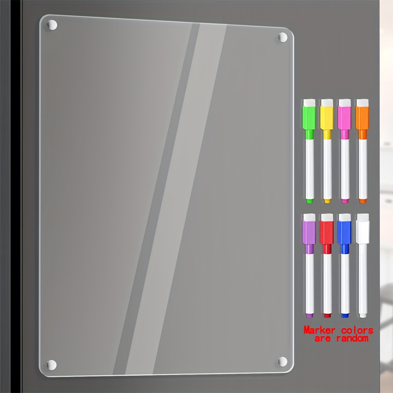 TEMU 대형 사이즈/A3/11.8인치 * 16.5인치 아크릴 자석 스티키 냉장고 지우개 보드, 재사용 가능한 계획 보드, 투명 계획 보드. 주간 스케줄, 냉장고 메뉴, 쇼핑 목록에 적합하며, 8개의 랜덤 색상의 마커가 함께 제공됩니다.