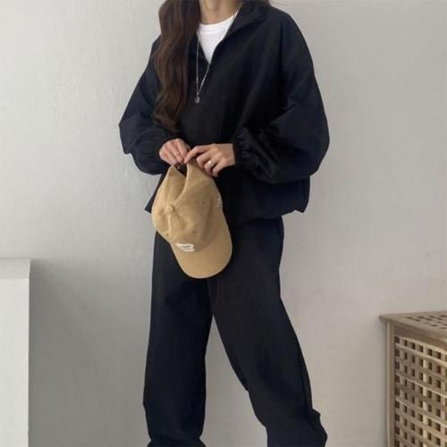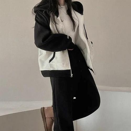 [신상오픈런]상하의 배색 여성점퍼 밴딩 일자바지 후드집업 트랙수트 (29196811)