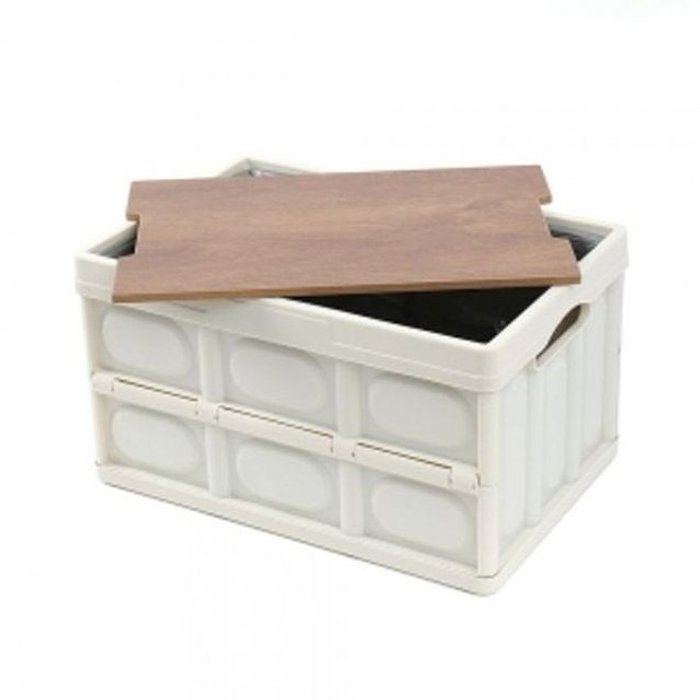 ( )캠핑박스테이블 차트렁크정리함 트렁크보관함 캠핑폴딩박스 폴딩박스 손잡이 테이블형 밀크 30L